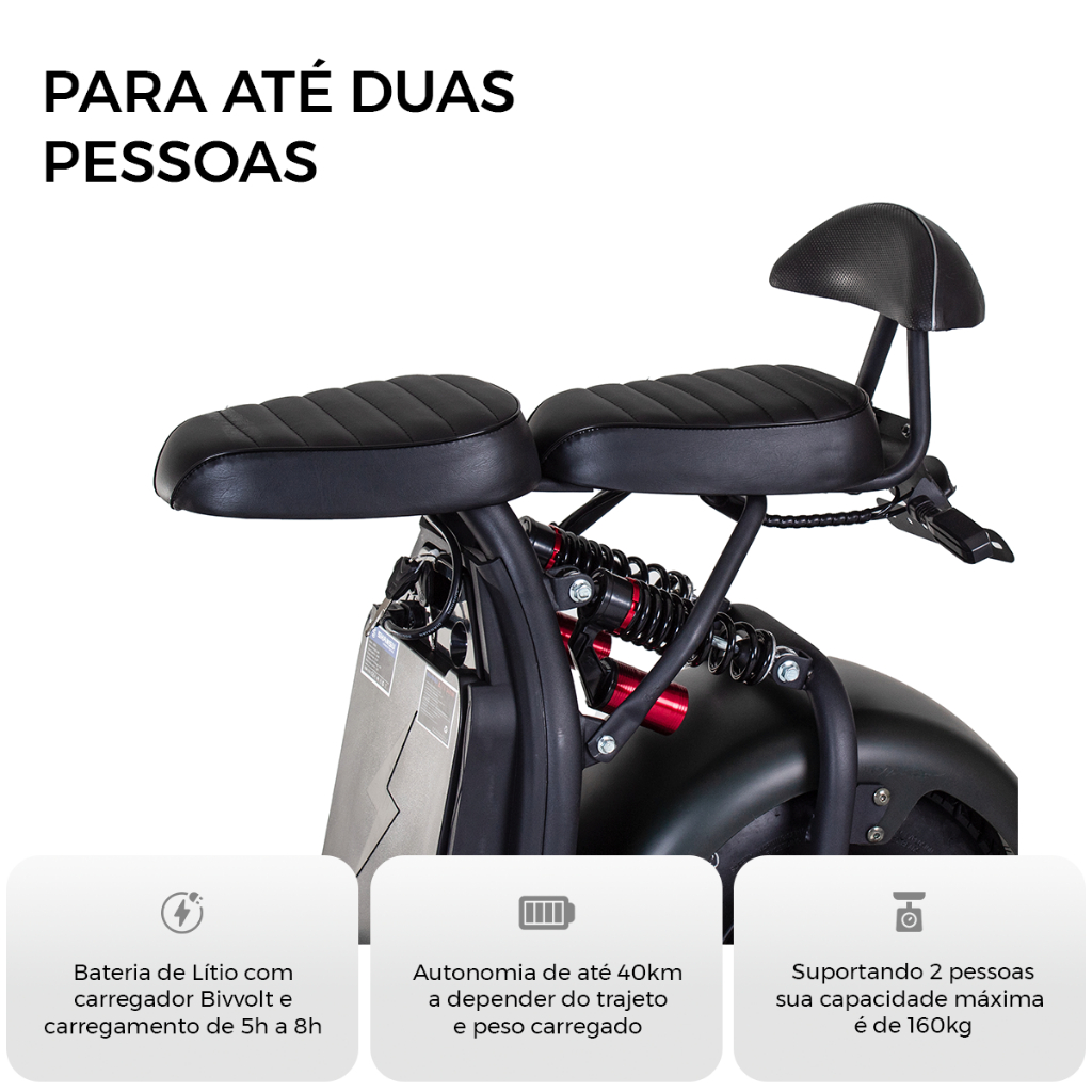 Equipada com bateria removível, recarregue facilmente onde quiser e aproveite mais autonomia em seus trajetos.